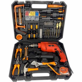 آچار فرانسه-متر-چکش-انبردست-سیم چین-کاتر-آچار-دسته کمکی-تیغ(5)-چسب-پیچ گوشتی کوچک(4)-پیچ گوشتی بزرگ(3)-فازمتر-اره مویی-سری بکس (9)-مته سوراخکاری (6)-پیچ و رول پلاک-مته گردبر-سری پیچ گوشتی(10) -دفترچه راهنما-خط کش- ذغال-کیف BMC